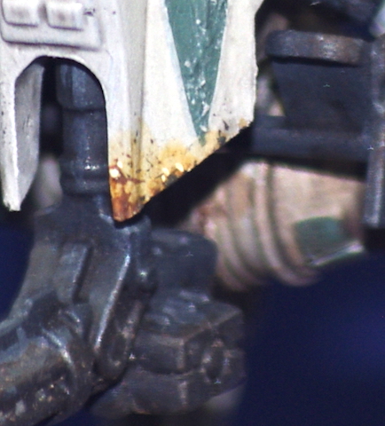 Using a sponge, I again added some chipping effects, this time to selected areas all over the figure – front panel, feet, leading edges – using a mix of Black and Gunmetal.