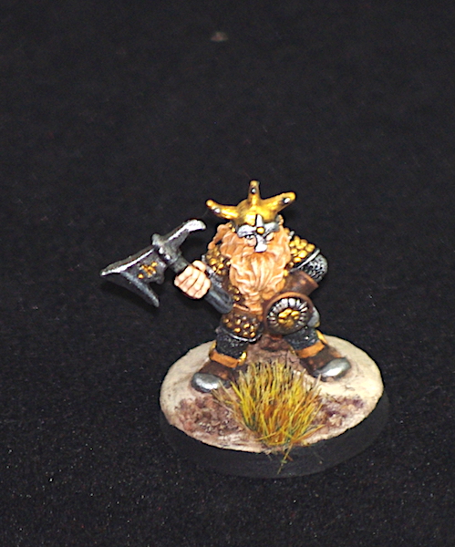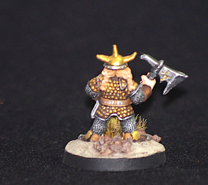 Your dwarves came out looking nice. I like the gold armor and I thought the bases were neat too with the little piles of rocks and the cracked earth.