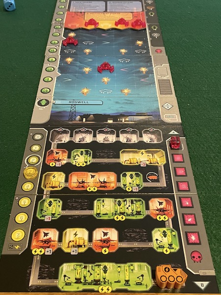 I’ve recently learnt to play Under Falling Skies, a pure solo game very reminiscent of the old arcade game, Space Invaders. I found the game to be a challenge (actually downright difficult to be honest) on the standard level, but by playing at a harder level, even though I couldn’t beat the standard one, I was able to see what really mattered and refined my play. I then returned to the standard difficulty and was able to win the majority of games.