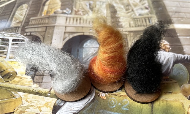The vehicle damage markers are next. These are three bits of coloured wool and come with MDF bases to glue them to. I suppose they’ll do the job, but I reckon I could do better with my airbrush and some cotton wool!