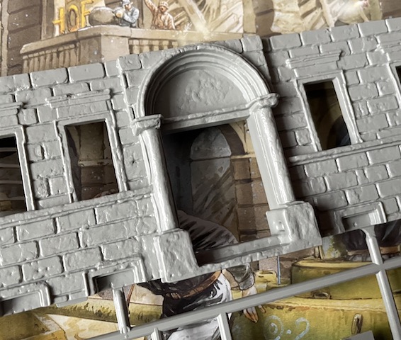 A bit more interesting are the two resin barricades. These are 14com long and full of detail. One is a line of sandbags laid over a dilapidated brick wall, with a couple of crates thrown in for good measure. The other has a small truck covered with debris and what appears to be a large rug! There’s a bit of flashing to remove, but once painted they’ll look great.