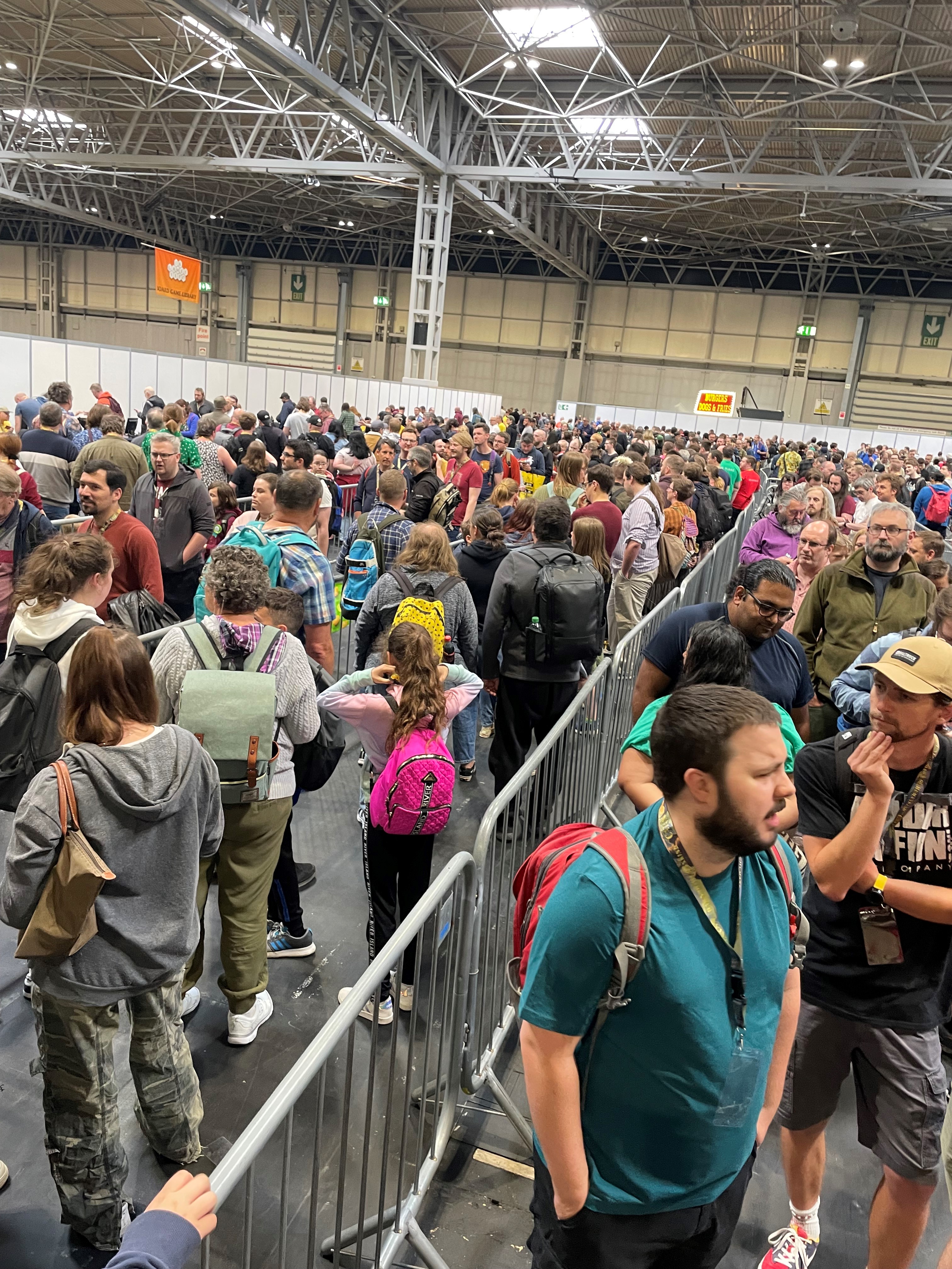 More queueing to get into the NEC car park, which was busier than I’d ever seen it before for the EXPO on a Friday. This was followed by a lengthy wait in yet another queue to collect our tickets. I never get this bit. We book our tickets online but still have to wait in a queue to collect them with others who are buying theirs at the show – booking online gives you no advantage. No, I just don’t get it. Everything else I’ve been to where I book tickets online either allows you to print them out like a day before, or you get in a pre-booked only queue that sees you processed quite quickly.
