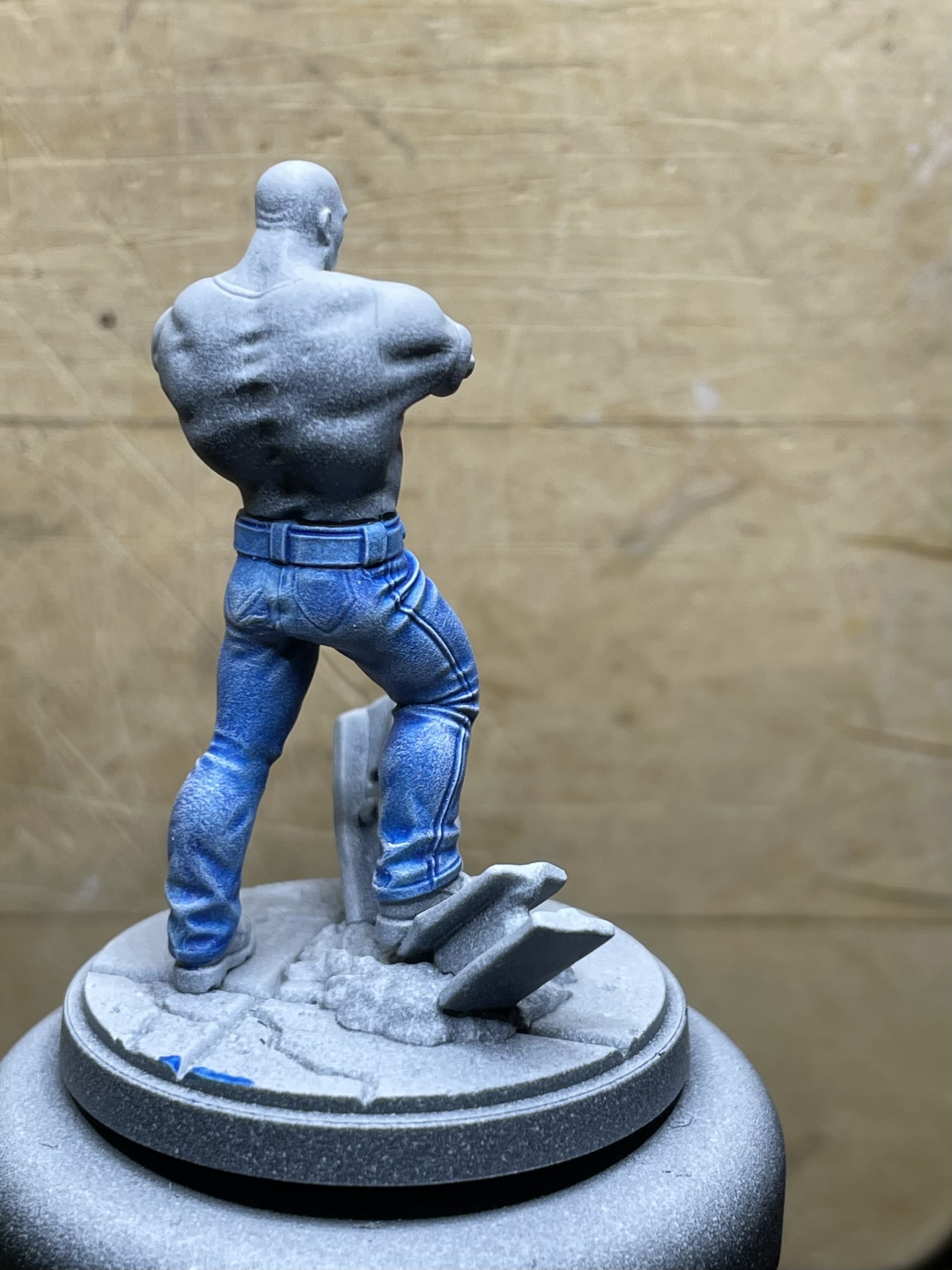 For his jeans, I used a thin coat of Blue Ink followed by a drybrush of white to make them look a little worn.