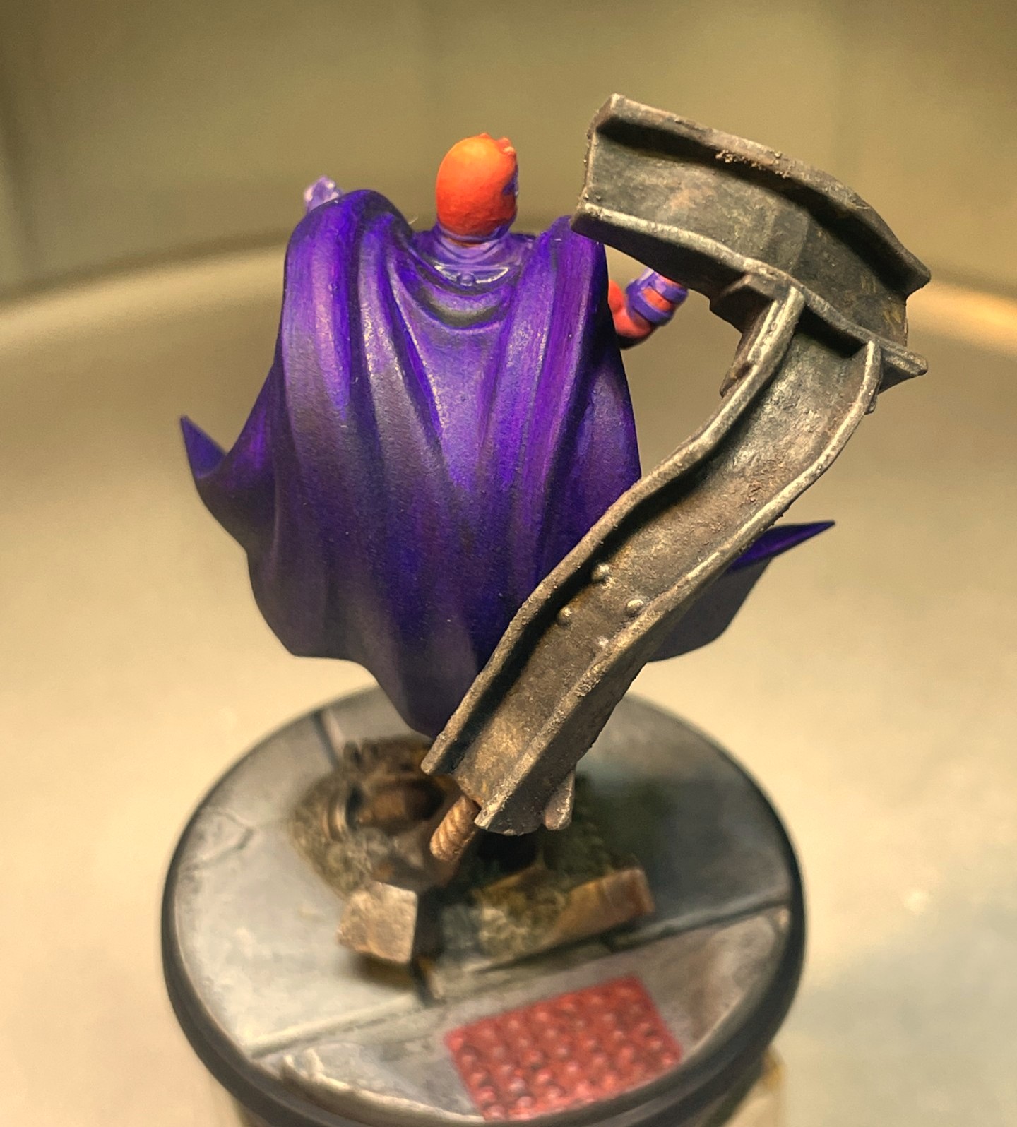 When I posted about painting Magneto a couple of months ago, you may recall I had a few issues trying to reproduce the colour purple and its variants in the photos. I suspected it was down to the glossy finish of the Xpress paint I’d used, as it occasionally dries that way, especially when used as a glaze.