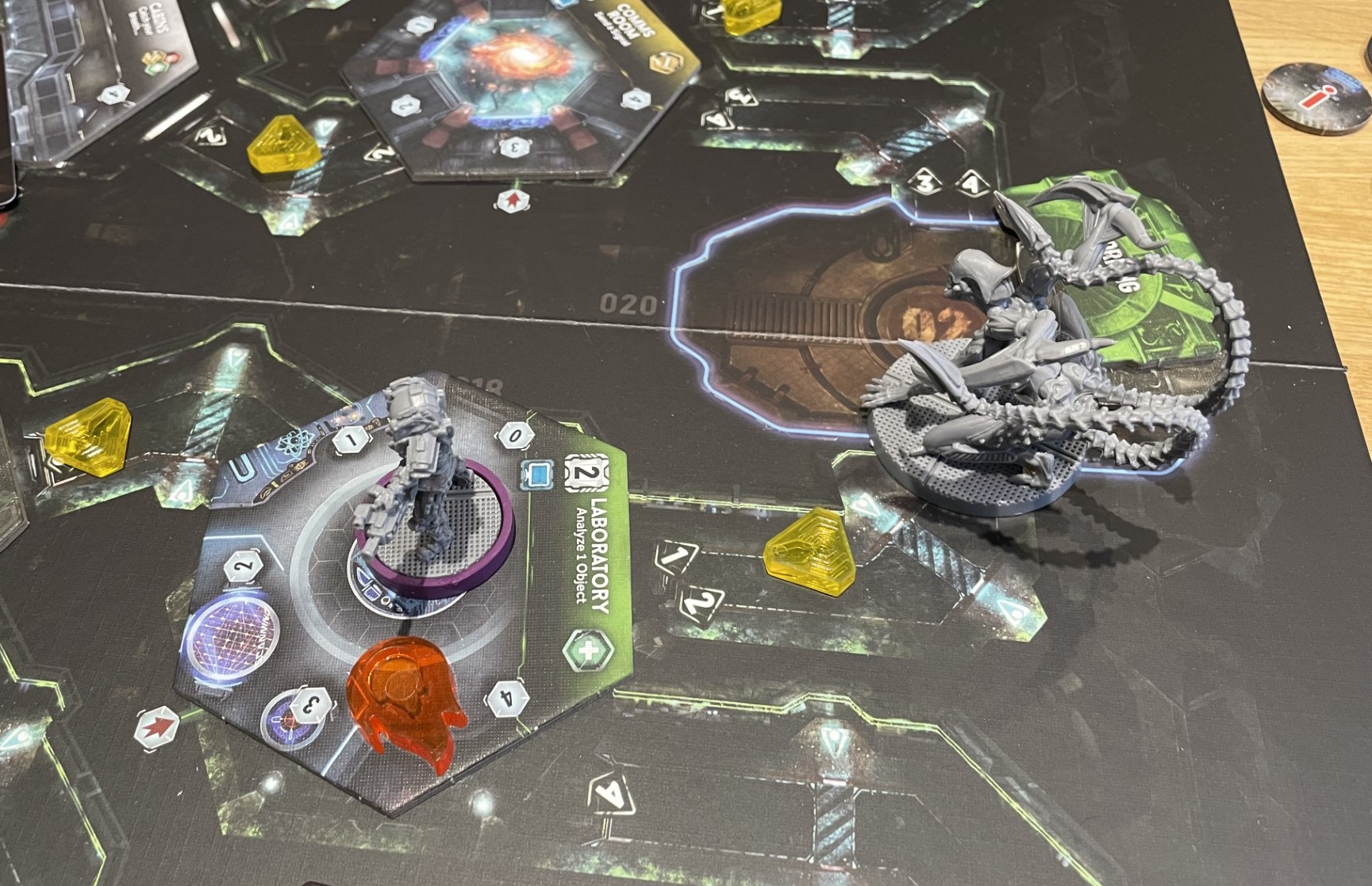 This game is right up my street. It’s cooperative… ish! If you work together you’re less likely to attract the aliens who, of course, want to hunt you down and gorge themselves on you – as every good alien should! You can also get a place searched quicker and move thing around from character to character to make best use.